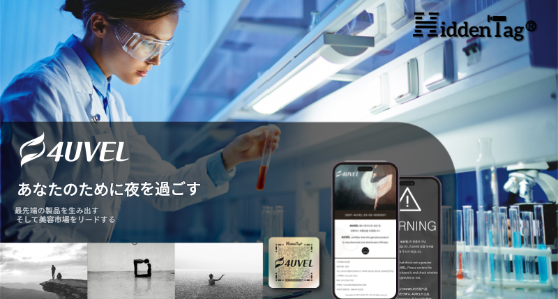 HiddenTagは、4UVELを含む世界1,300以上のブランドに採用されています。本サービスは「複製不可能」を目標に、流通の全段階でリアルタイムな保護を行い、偽造の可能性を根本的に遮断する偽造防止サービスです。製品ごとに固有情報を付与し、グローバルなデータ分析や偽造品の検出・通報システムを提供することで、企業のブランド保護戦略を強力に支援します。